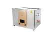 通過換能器,將功率超聲頻源的聲能轉(zhuǎn)換成機(jī)械振動,通過清洗槽壁將超聲波輻射到槽子中的清洗液。由于受到超聲波的輻射,槽內(nèi)液體中的微氣泡能夠在聲波的作用下快速變大破裂,破裂時(shí)產(chǎn)生的高強(qiáng)度剪切力作用于各類樣品上,從而達(dá)到清洗、提取、乳化、加速溶解、粉碎、分散等作用。